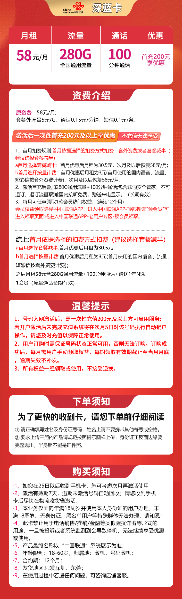 深圳联通深蓝卡